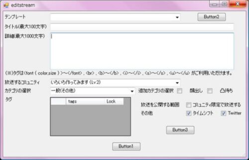 1.19もまた、何の計画もなく突き進みます。 とりあえず、ログを保存する機能。 これにともなって、リアルタイムで書き込むのは止めようかなと考えてます。 あと、ログを書き込むときに一緒に書き込んでる放送情報を読み込んで接続する機能。 どういう利用価…